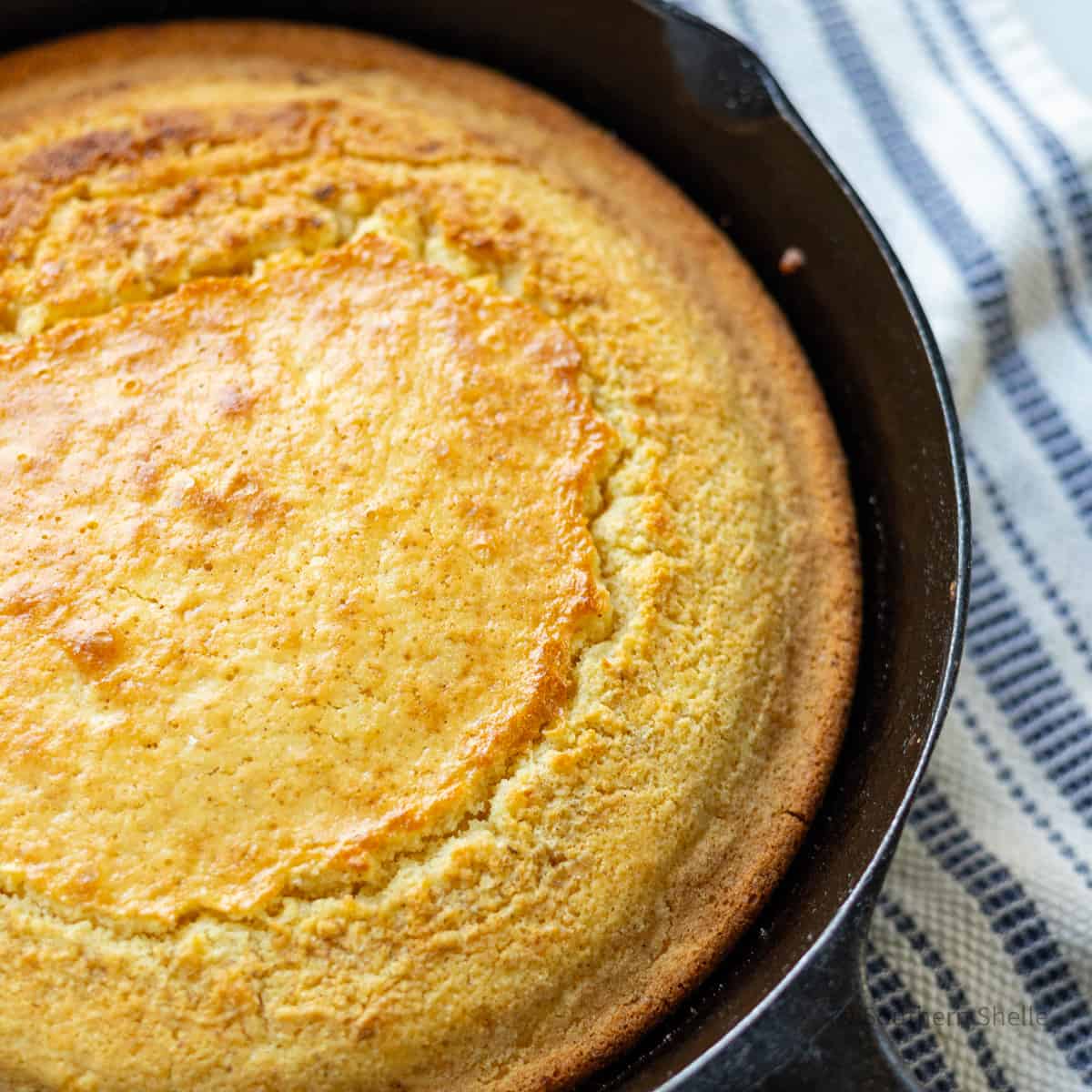 Turn the cornbread out of the skillet immediately, and allow to cool for a few minutes before serving.